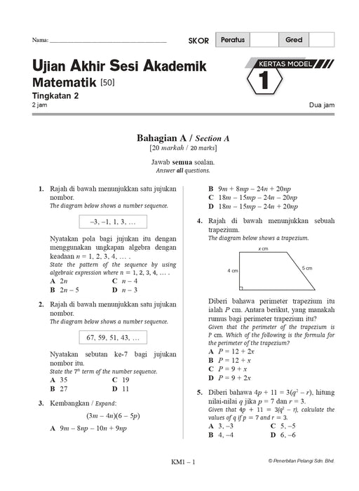SKOR A Kertas Model Ujian Akhir Sesi Akademik as a summative school-based assessment PBD specifically designed to prepare Form 1, 2, and 3 students for the Academic Session Final Examination (UASA). Commencing in the 2024/2025 academic session UASA mastery level will transition.