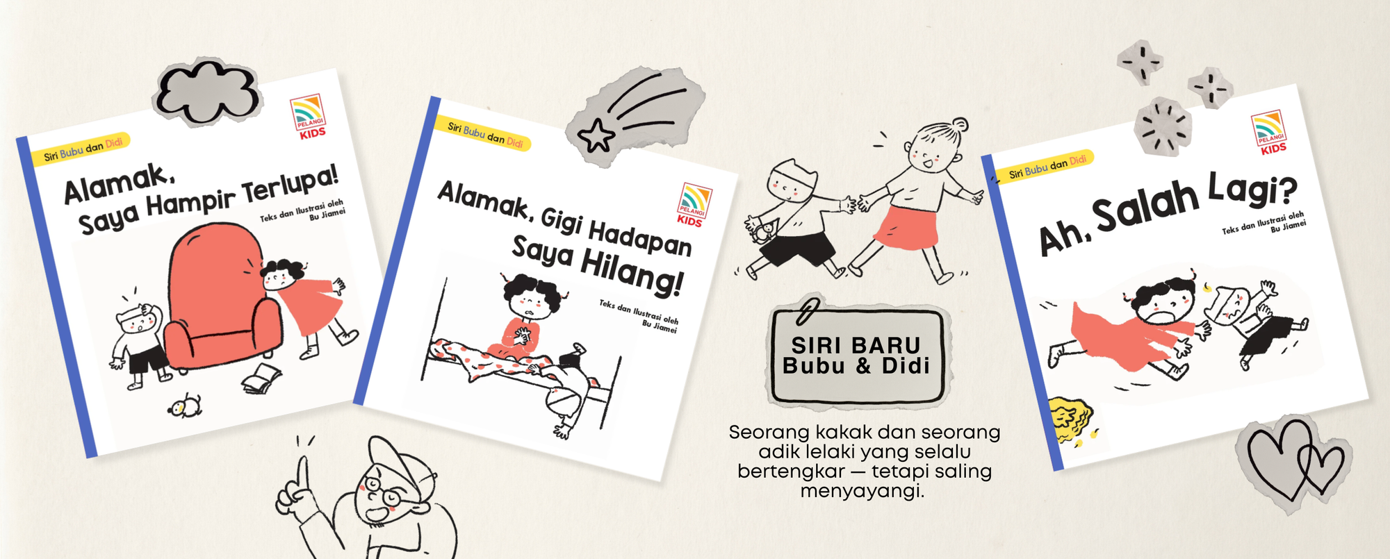 View full detailsSeorang kakak dan seorang adik lelaki yang bertengkar seperi kucing dengan anjing — tetapi saling menyayangi. Setiap buku mengandungi 5 cerita lucu...